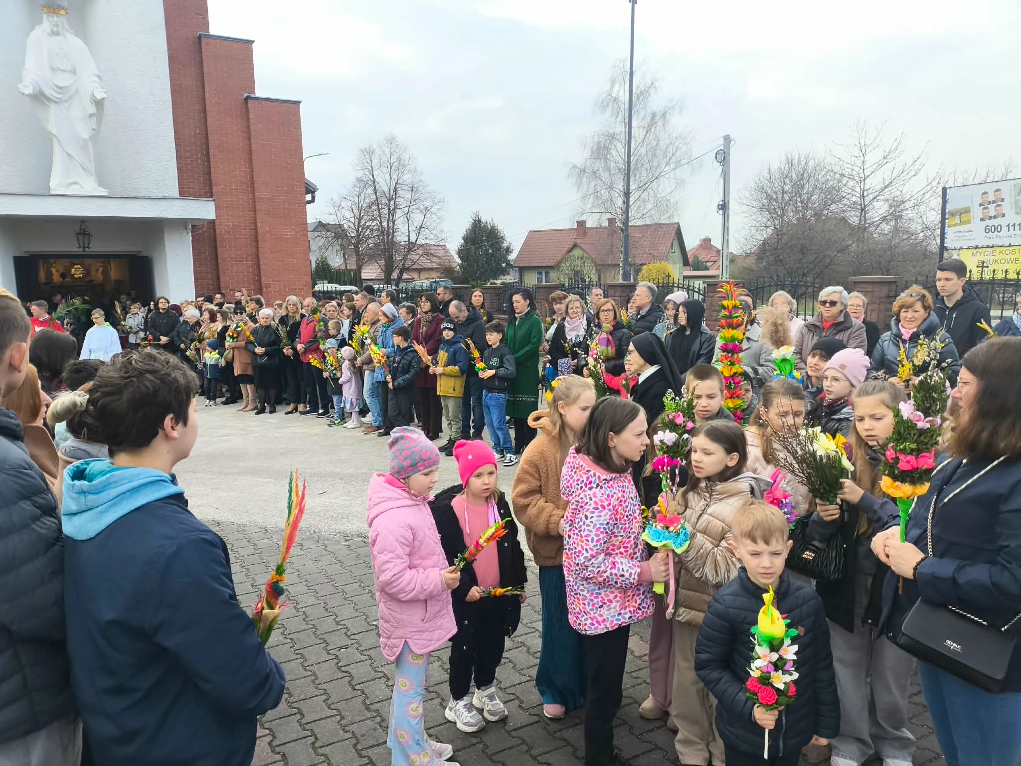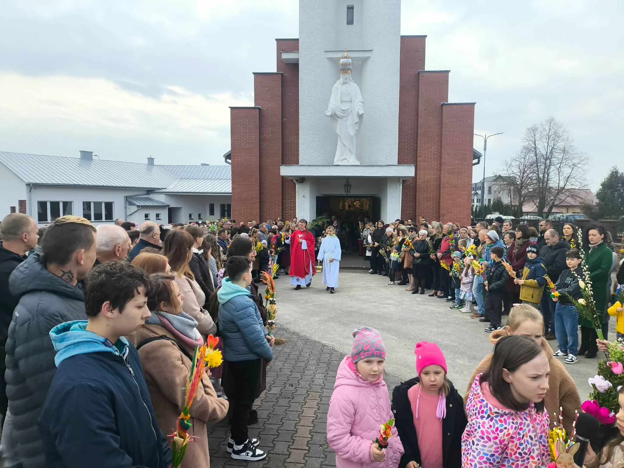 Uroczysta Msza Św. z procesją z palmami odbyła się o godzinie podczas której wierni, niosąc palmy, wyrażali swoją wiarę i radość z obecności Chrystusa.