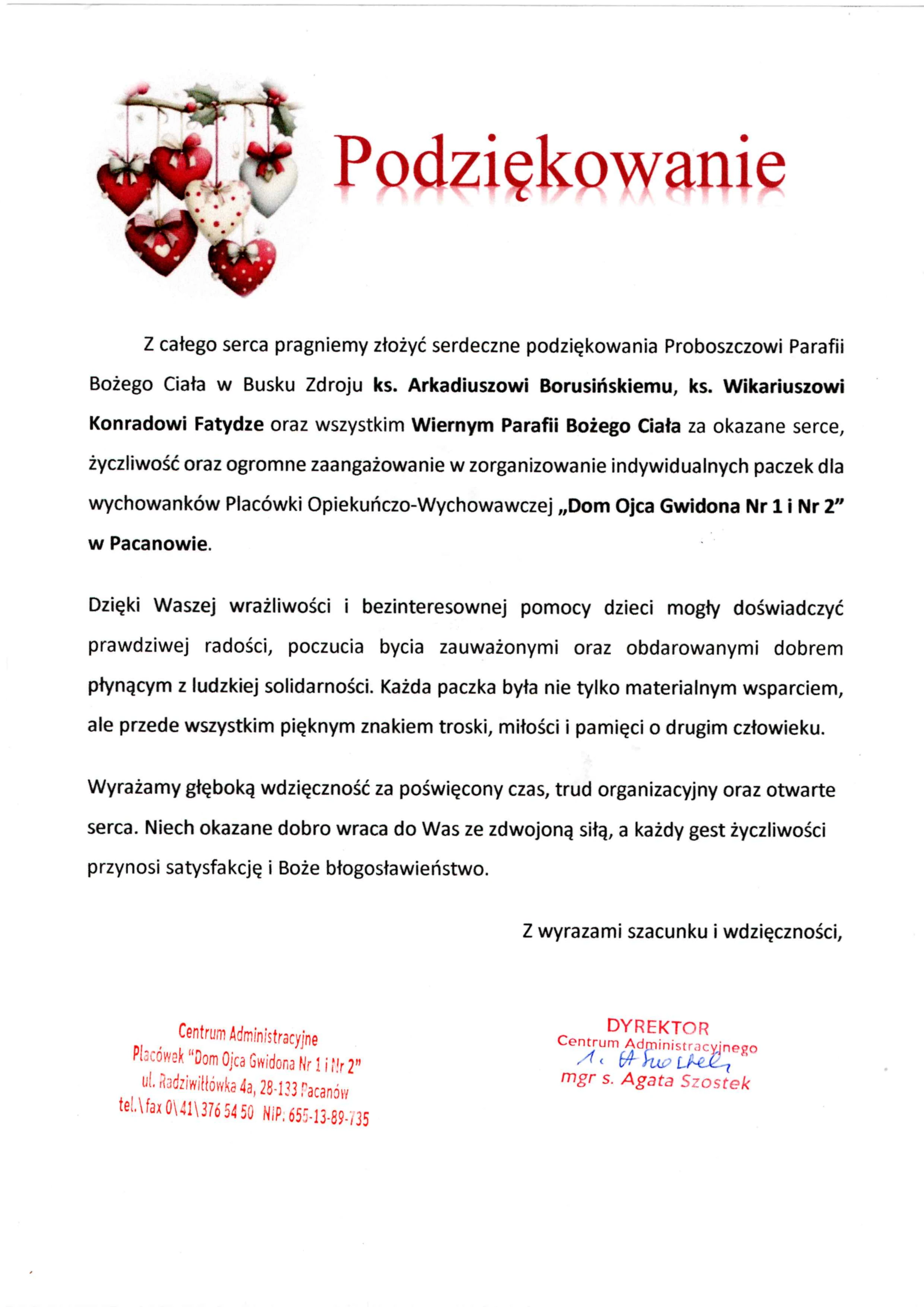 Przekazanie paczek dla dzieci Domu Dziecka w Pacanowie jako Dar Serc Parafian Bożego Ciała25.12.2025, 02:28:18Podziękowania dyrektora Domu Dziecka i zdjęcia z wydarzenia.