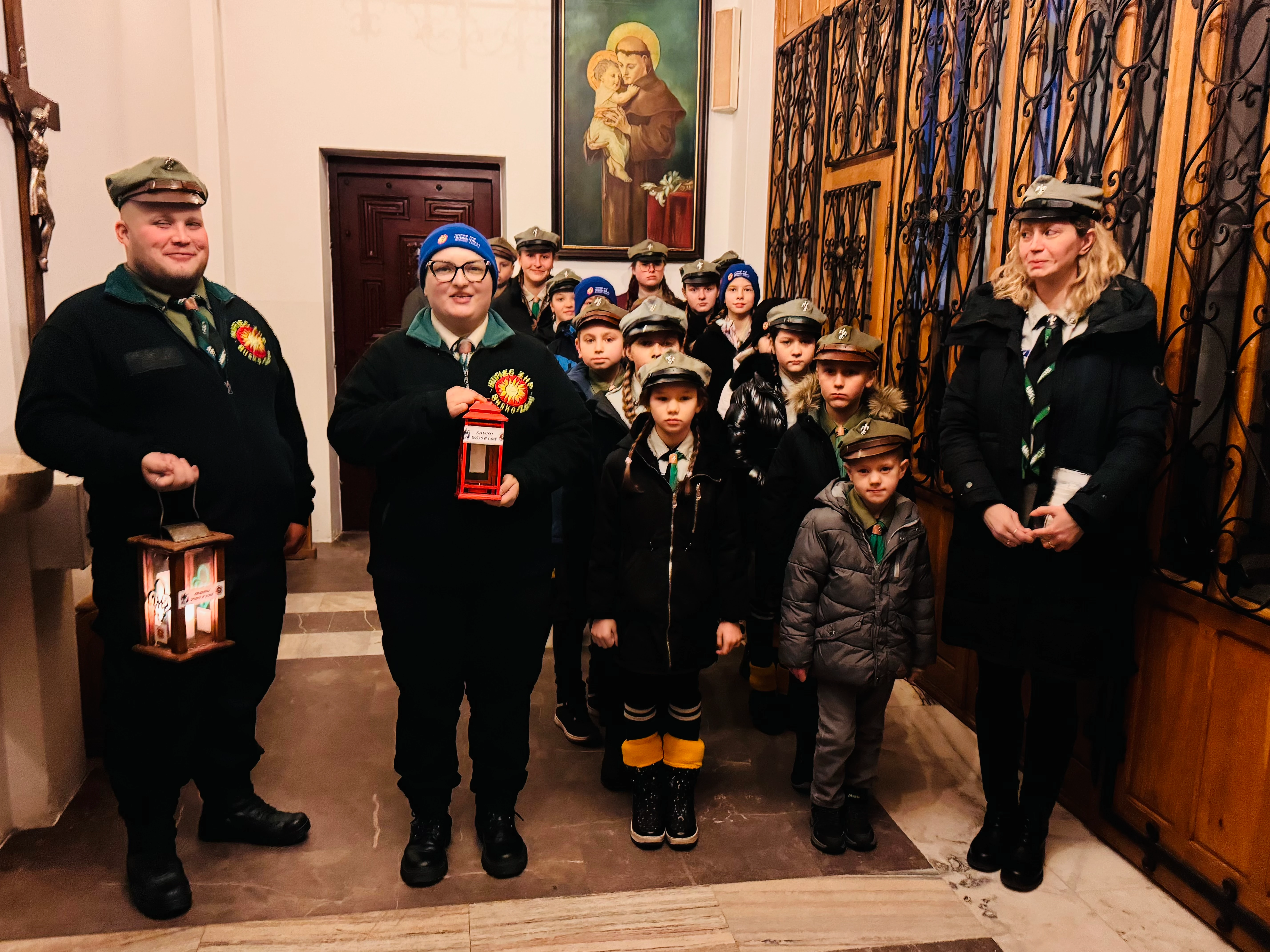 Uroczysta Msza Święta, koncelebrowana przez naszego Księdza Proboszcza oraz Księdza Wikariusza, nabrała szczególnego wymiaru, gdy młodzi harcerze w swoich mundurach stanęli przed ołtarzem z lampionami, w których płonęło święte światło. Ten prosty gest przekazania płomienia stał się pięknym symbolem wiary, nadziei i miłości. Jak Trzej Królowie niegdyś nieśli dary do Betlejem, tak harcerze przynieśli nam światło zrodzone w miejscu narodzin naszego Zbawiciela. W ich oczach można było dostrzec dumę, ale i głęboką świadomość, jak wielkie posłannictwo spełniają. To światło, które każdego roku pokonuje tysiące kilometrów, przypomina nam, że pokój zaczyna się w ludzkim sercu i stamtąd promieniuje na cały świat.